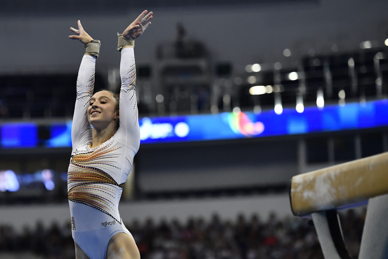 Op de balk won ze met een score van 13933 nina derwael. Zaterdag veroverde ze ook al goud aan de brug.